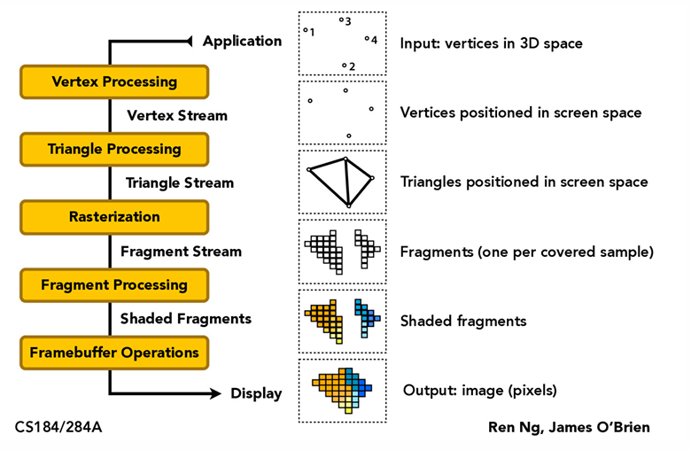 | Rasterization | 삼각형 --> 픽셀 변환 |