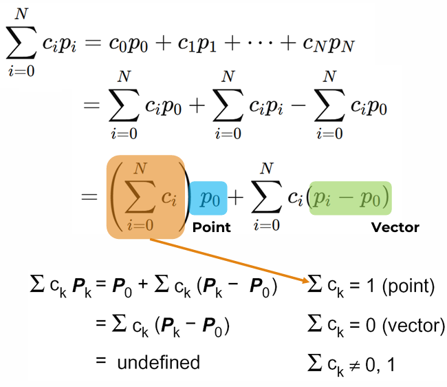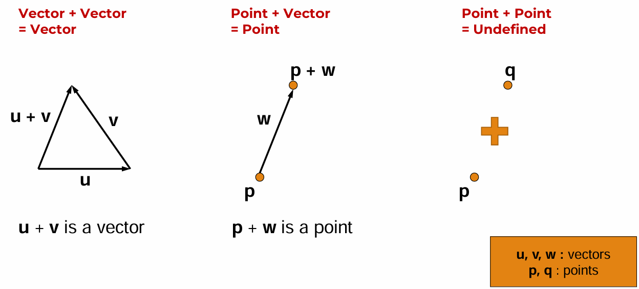 * Affine Geometry : 점과 벡터의 구조를 설명하는 기하학 / 원점이 고정되지 않음
